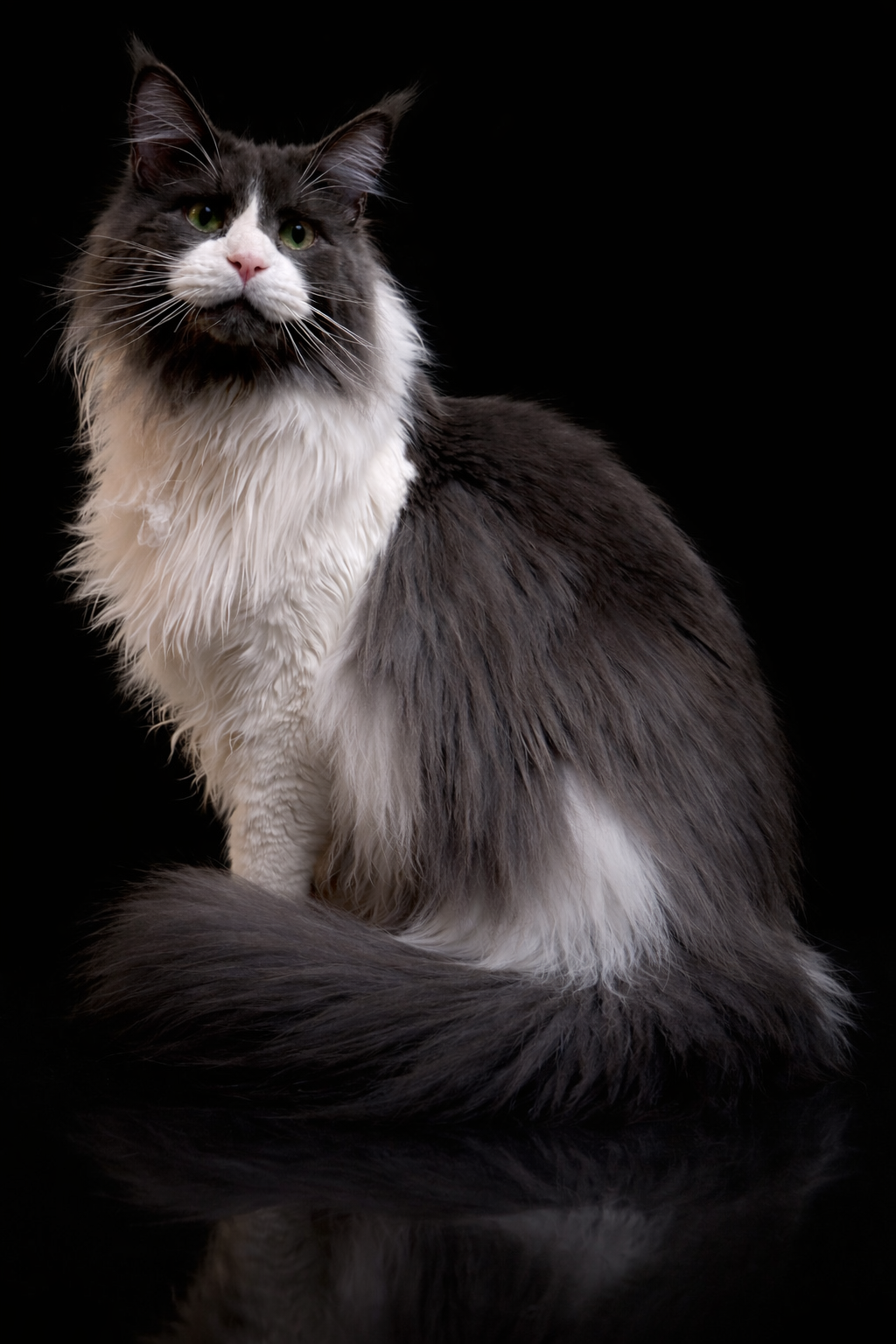 Roo is a solid blue and white neuter. He has been on the show bench as a kitten and will be starting as an adult shortly. He has just turned 1 year and weighs 8kg. He gained Best Maine Coon Kitten at the GCCF Supreme Show in the Midlands.